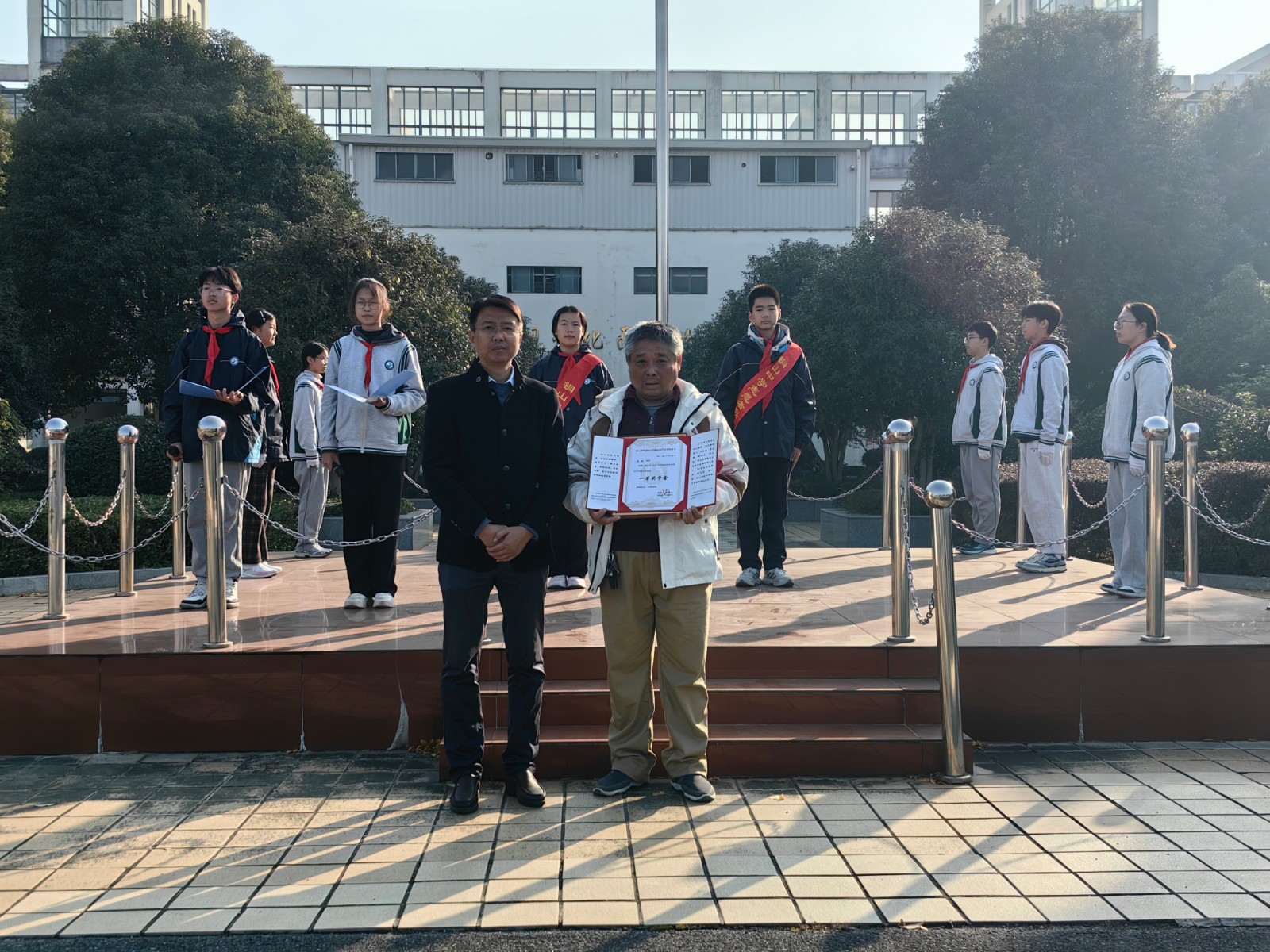 我们的社会、学校充满着爱,为了激励同学们勤奋学习、努力拼搏,南京市每年都会发放励志奖学金。上一届毕业生高露同学便通过自身努力获得了南京市一等励志奖学金。陶勇校长为高露同学的家长颁发2024-2025学年度南京市普通中小学励志奖学金证书。
