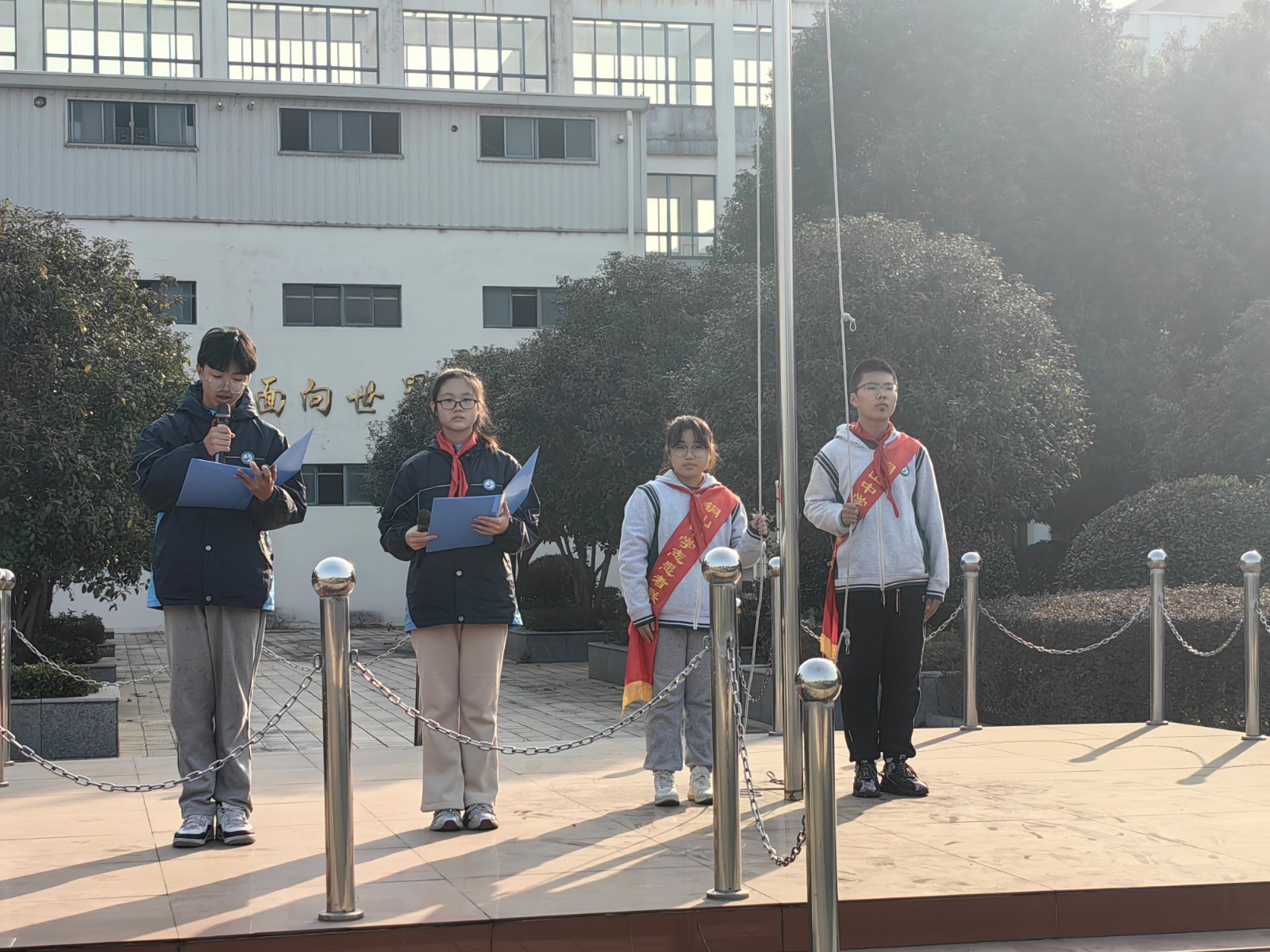 本次升旗任务由七(4)班负责。