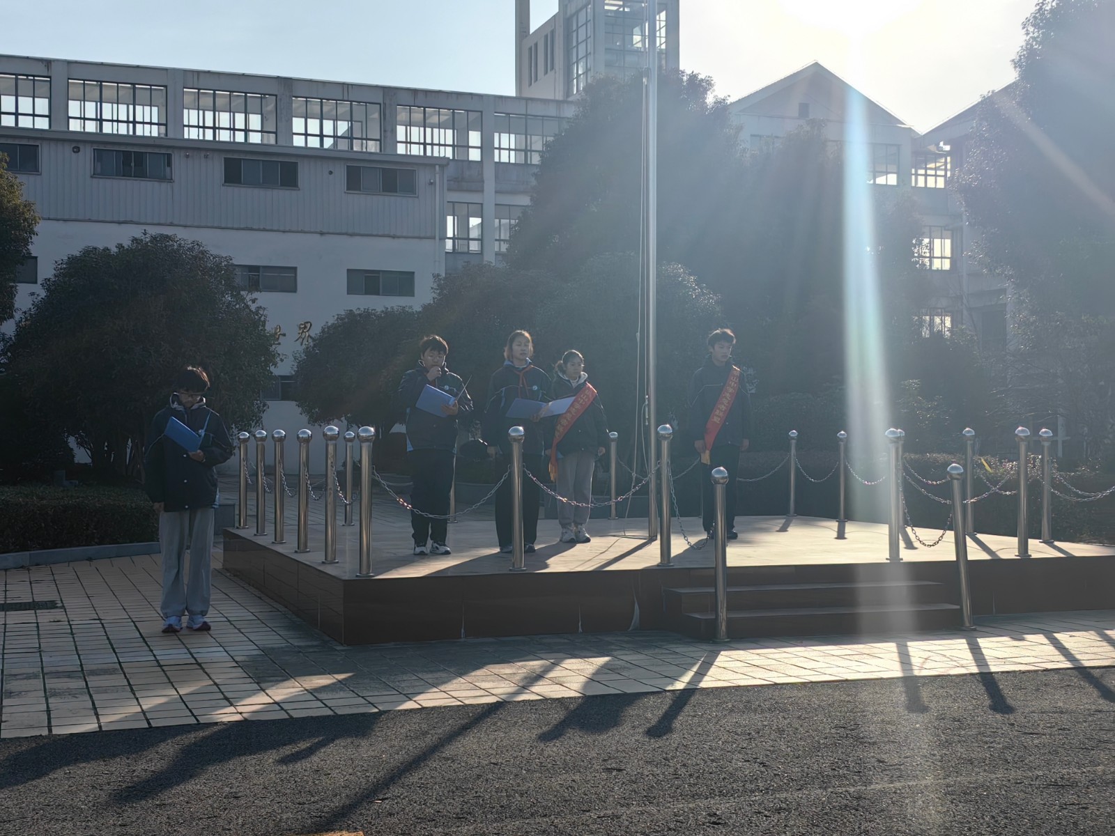 升旗手姜宁珊,姜宁珊同学性格活泼开朗,喜欢画画,读书,唱歌,她的座右铭是“书籍是人类进步的阶梯。”